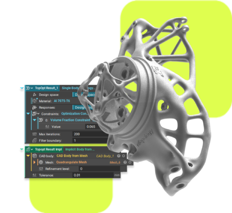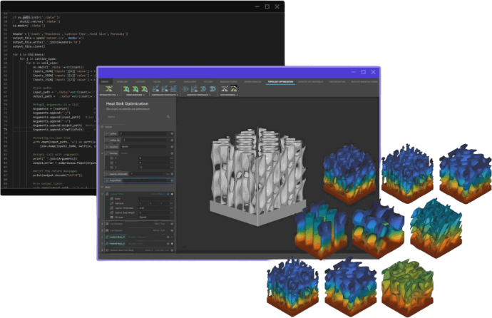 Lattice yapılar, topoloji optimizasyonu, alan keşfi (field-driven design), parametrik dokular ve ısı transferi yönetimi gibi gelişmiş tasarım süreçleri; geleneksel CAD sistemlerinde haftalar sürebilecek çalışmaları yalnızca saatler içinde tamamlayacak şekilde otomatikleştirilebilir.